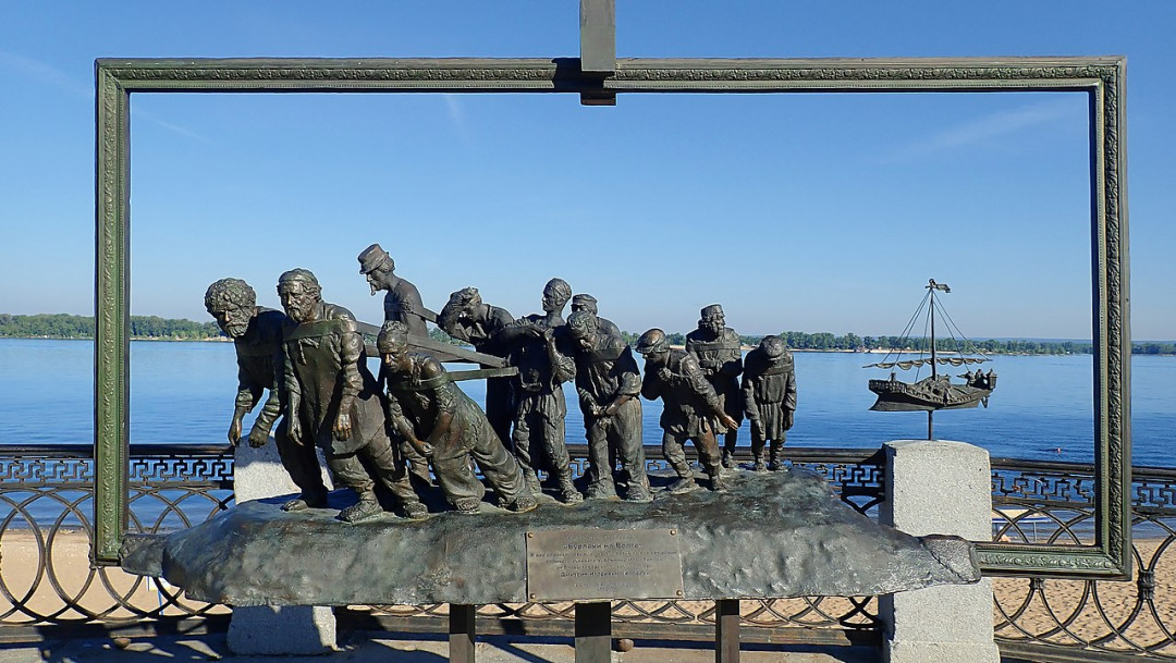 Скульптура «Бурлаки на Волге» появилась на набережной Самары в 2014 году к 170-летию Ильи Репина. Композиция, иллюстрирующая известную картину художника, состоит из фигур бурлаков и баркаса, заключенных в бронзовую раму-мольберт. Фоном для композиции служит настоящая Волга.