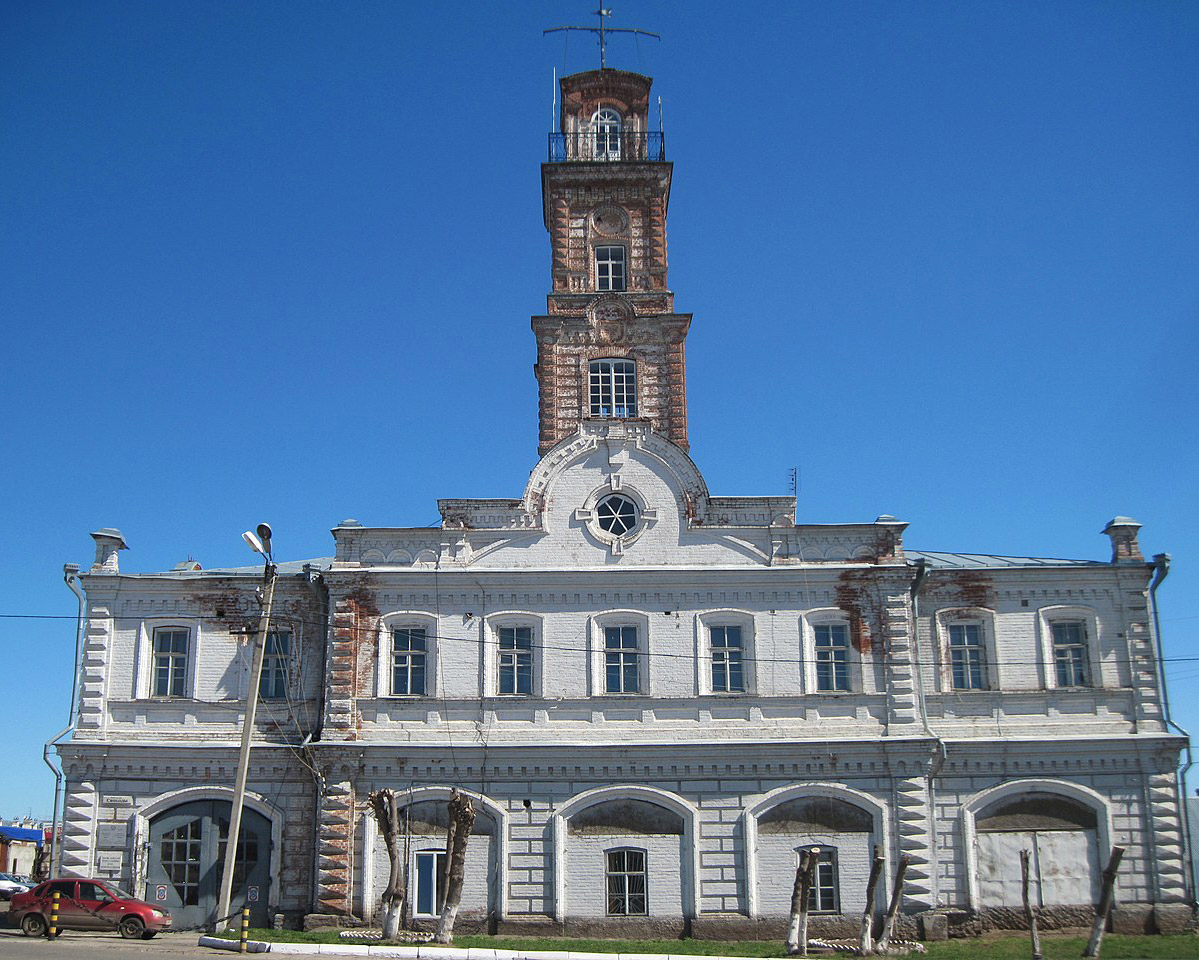 Сарапульская пожарная каланча — памятник архитектуры федерального значения и одна из главных достопримечательностей старинного города. Её построили всего за 12 месяцев в 1887 году — в то время наполовину деревянный Сарапул постоянно страдал от разрушительных пожаров. Сооружение высотой 24,7 м, выдержанное в русско-византийском стиле, стало настоящим спасением для жителей города. 4-ярусную башню с пристройками возвели на самом высоком месте — Троицкой площади (ныне площадь Свободы). По сей день в здании располагается пожарная часть. На первом этаже находится гараж, на втором рядом с комнатами отдыха открыт небольшой музей, где собраны экспонаты, касающиеся самой башни и истории пожарной службы Сарапула.