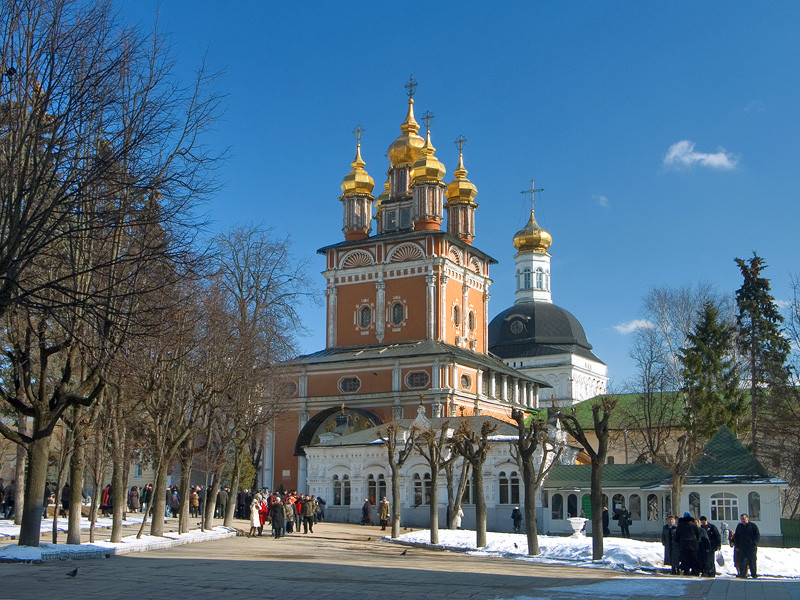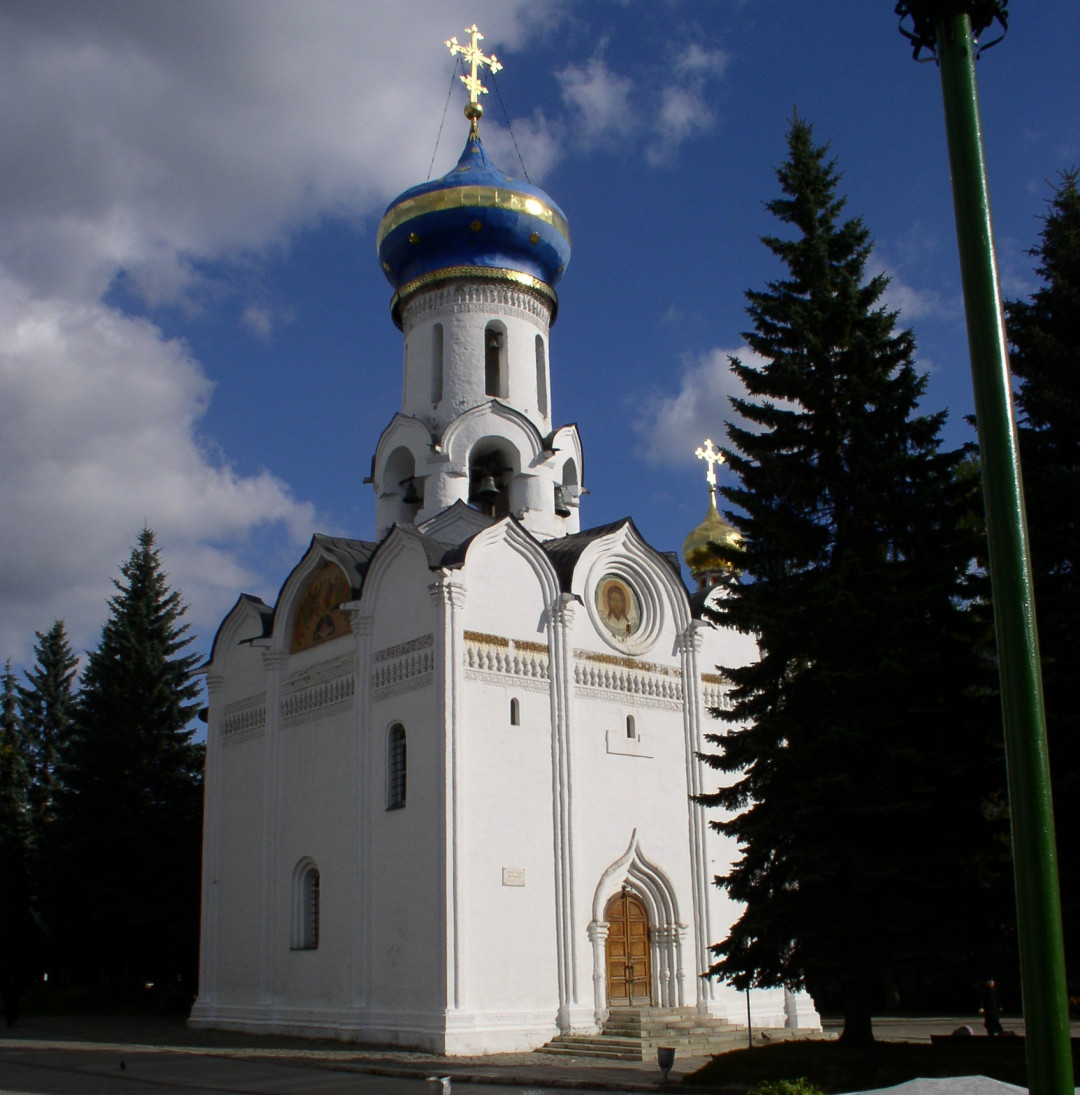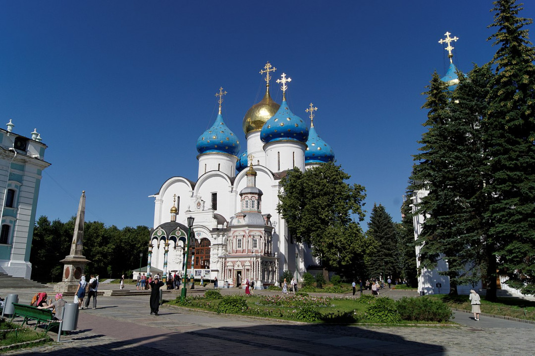 Успенский собор Троице-Сергиевой Лавры возведён по приказу Ивана Грозного в 1585 году. Государь лично заложил первый камень в основание храма. Завершились работы уже после смерти Грозного, явив миру великолепную копию Успенского собора Московского Кремля. Декор белых внешних стен минимален, взгляд притягивают голубые купола, украшенные голубыми звёздами — традиционные для храмов, посвящённых Богородице. Внутри своды собора опираются на шесть прямоугольных пилонов. Стены и потолок украшают старинные фрески, пятиярусный резной иконостас собран из икон разных времён, самая старая — ровесница собора. Алтарь сияет золотом и драгоценными камнями. Деревянная рака с мощами Сергия Радонежского — главная святыня храма. У стены собора в пристроенном каменном шатре расположена семейная усыпальница Годуновых.