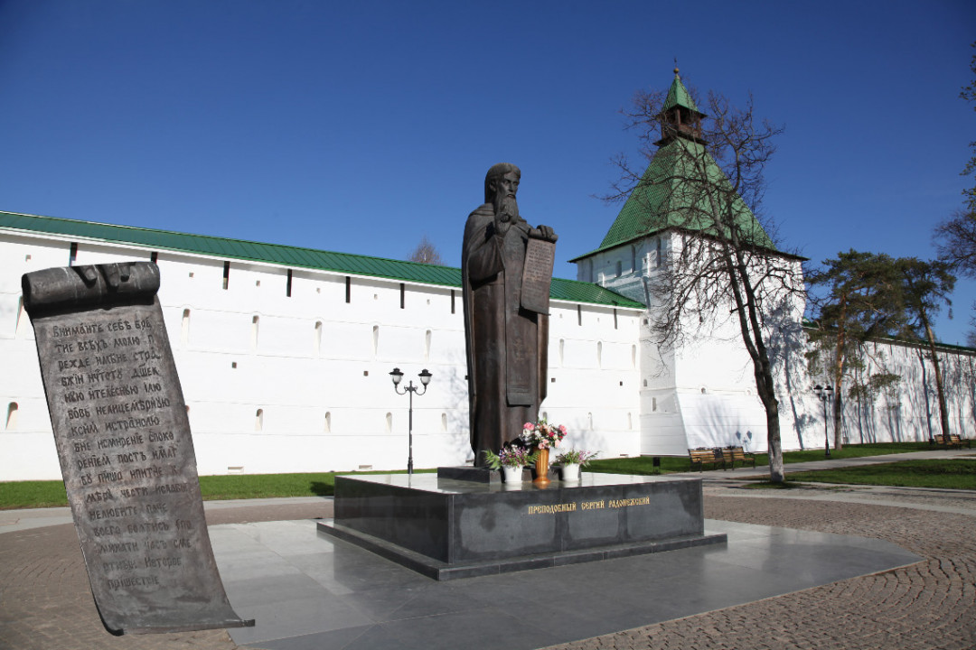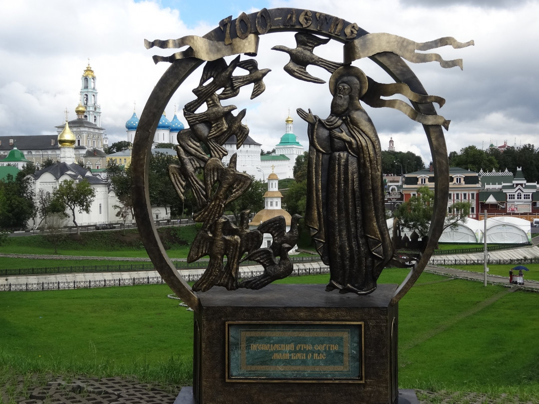 Памятник Сергию Радонежскому возвышается у входа в Троице-Сергиеву Лавру с 2000 года. Мальчик из простой семьи с мирским именем Варфоломей на пути служения Богу достиг высшего авторитета и уважения, став основателем главной духовной обители России. Именно отец Сергий благословил Дмитрия Донского на битву с ханом Мамаем. К нему шли паломники и страждущие со всей Руси в поисках мира и успокоения души. Преподобный игумен с постамента благословляет наших современников на жизнь в мире, любви и согласии.