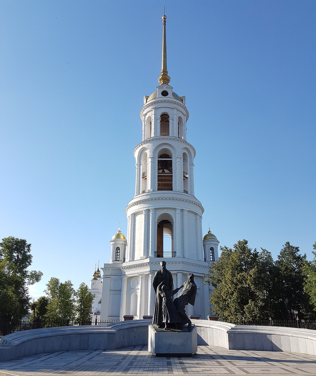Прекрасный белоснежный ансамбль в центре Старого города состоит из Никольской церкви и Воскресенского собора, построенных в XVIII столетии. Завершает его архитектурная доминанта города — колокольня высотой 106 м. Она по сей день является самой высокой отдельно стоящей колокольной башней в Европе. Сооружение состоит из четырёх ярусов и шпиля, построенного подобно Эйфелевой башне по принципу стального каркаса. В честь чудесного спасения семьи Александра III, едва не погибшей во время крушения поезда, для Воскресенского собора отлили 20-тонный колокол и в 1891 году подняли его на звонницу. В советское время он чудом избежал переплавки и продолжает радовать прихожан своим звоном.