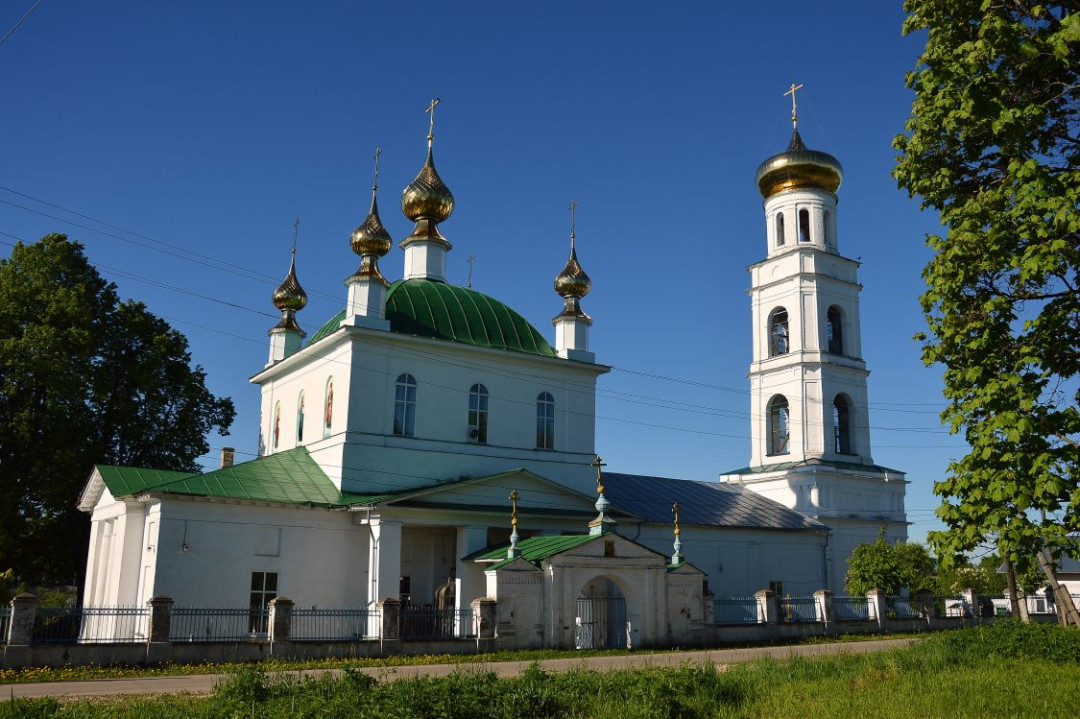 Ильинская церковь на левом берегу Тезы построена в 1881 году, хотя место для неё на городском плане было определено ещё в 1834-м. Сначала это была деревянная часовня, потом на её месте возвели двухэтажный кирпичный четверик с пятиглавием и деревянную колокольню. Каменная звонница с трапезной и притвором появились только в начале прошлого века. Внутри храм Ильи Пророка был расписан фресками, над южным входом стену украшало изображение Илии Пророка, возносящегося в небеса на огненной колеснице.