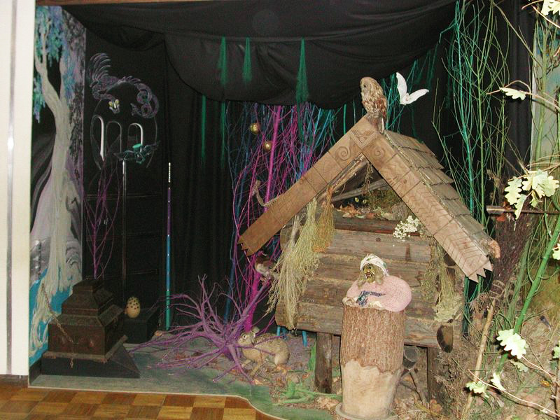 Сказочные герои предстают перед зрителями в знакомом с детства антураже. В одном из уголков музея детей ждёт встреча с избушкой на курьих ножках и хозяйкой — Бабой Ягой. У входа в музей посетителей встречают аниматоры в костюмах Лешего, Василисы Премудрой, Бабы Яги. Они рассказывают о сказочных жителях музея, предлагают детям различные конкурсы и испытания.