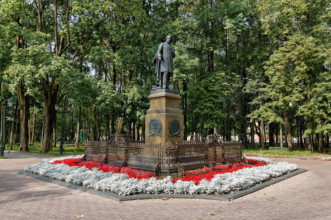 В центре парка расположен фонтан, от него лучами расходятся аллеи, украшенные скульптурными изображениями животных, стилизованными фонарями и коваными скамьями. В саду установлен памятник композитору М. И. Глинке. Никогда не пустует кафе «Русский двор», оформленное в русском сказочном стиле и работающее в формате бистро.