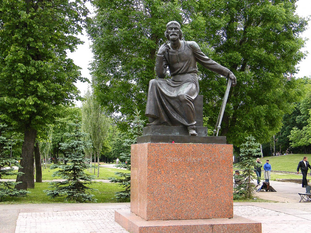 После завершения строительства крепостной стены Фёдор Конь был сослан в монастырь по ложному доносу, откуда сбежал и дальнейшая его судьба неизвестна. Памятник установлен напротив одного из творений зодчего — Громовой башни. Скульптор изобразил мастера в облике пожилого мужчины, опирающегося на деревянный циркуль и смотрящего на крепостную стену.
