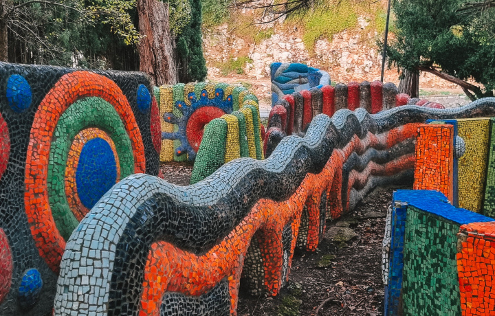 Начнётся наше приключение с мозаичного городка, дети его просто обожают. Он сделан в виде лабиринтов, поэтому бегать там одно удовольствие. Находится городок на въезде в Гагру и был создан ещё молодым Церетели.