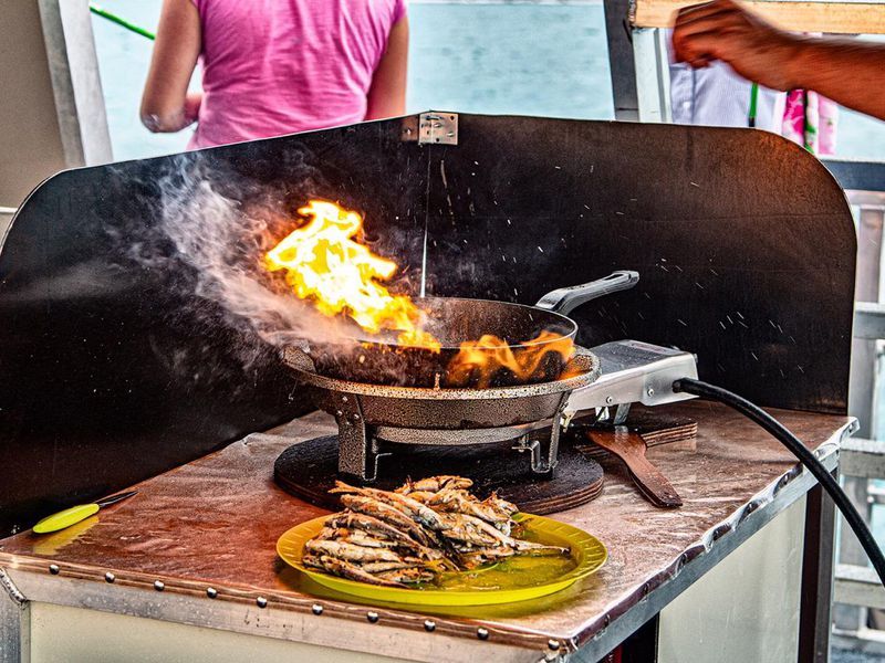 Проходите на борт нашего судна — мы отправляемся в открытое море на три часа. Вам не нужно ни о чем заботиться — все необходимое для рыбалки уже ждет вас. В конце путешествия наш капитан приготовит улов прямо на борту!