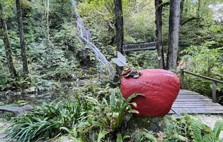 Далее поехали в горы через смотровые площадки, подвесной мост, завозили в сырный магазин и на пасеку, но я не любитель этого. Тем, кто был со мной в этот день мёд очень понравился. Мне понравилась вода на источнике, бьет прям из земли, а при этом газированная. Водопад сейчас не очень полноводный, но все равно красиво. Природа потрясающая.