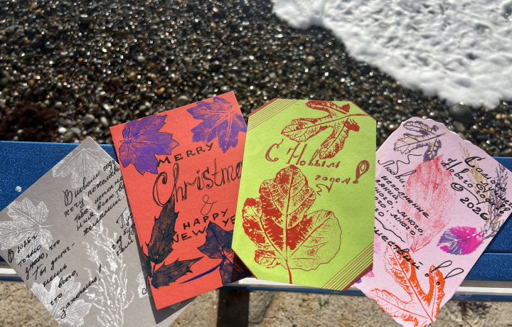 Вы откроете секреты «именных» деревьев и сами создадите новогоднюю открытку с отпечатком листа кипариса-новогоднего субтропического дерева, выполненный в технике монотипии. Вы увезёте с собой уникальные новогодние открытки с «зелёным автографом» растительных жителей субтропического парка: крупноцветковой магнолии, мушмулы и других.