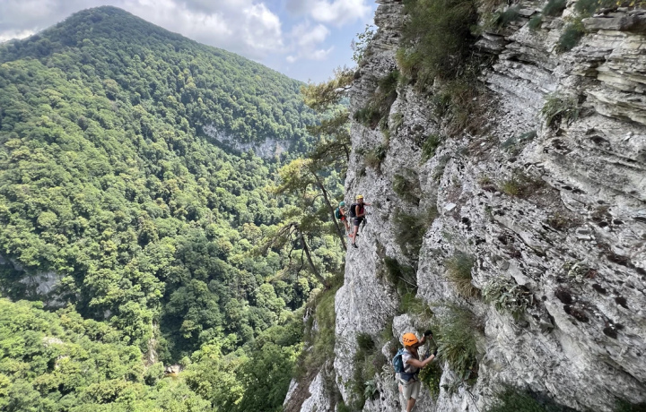 Если хочется почувствовать себя скалолазом и увидеть Сочи сверху — но без безумного экстрима, вам точно ко мне. Мы пойдём по оборудованному скальному маршруту via ferrata: будем подниматься, проходить узкие полки, заглянем в небольшую пещеру и всё это — со страховкой. Безопасно, красиво и очень запоминается.