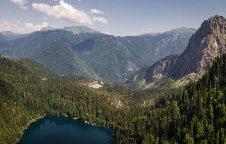Символ Абхазии — горное озеро Рица — раскинулось на высоте 950 метров над уровнем моря, в окружении заснеженных вершин и первозданных лесов. Находясь на берегах этого водоема, вы ощутите особую энергетику, нередко кажется, что время здесь остановилось. Недаром дача, построенная на озере Рица, была излюбленным местом отдыха товарища Сталина.