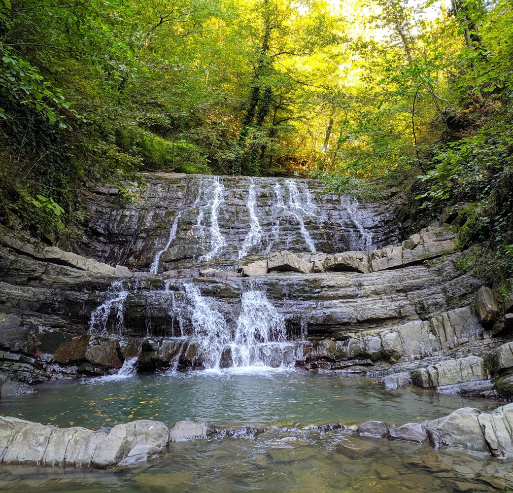 Затем — пешая прогулка по тисо-самшитовому лесу, окружающему семь каскадных водопадов (около 1 км).