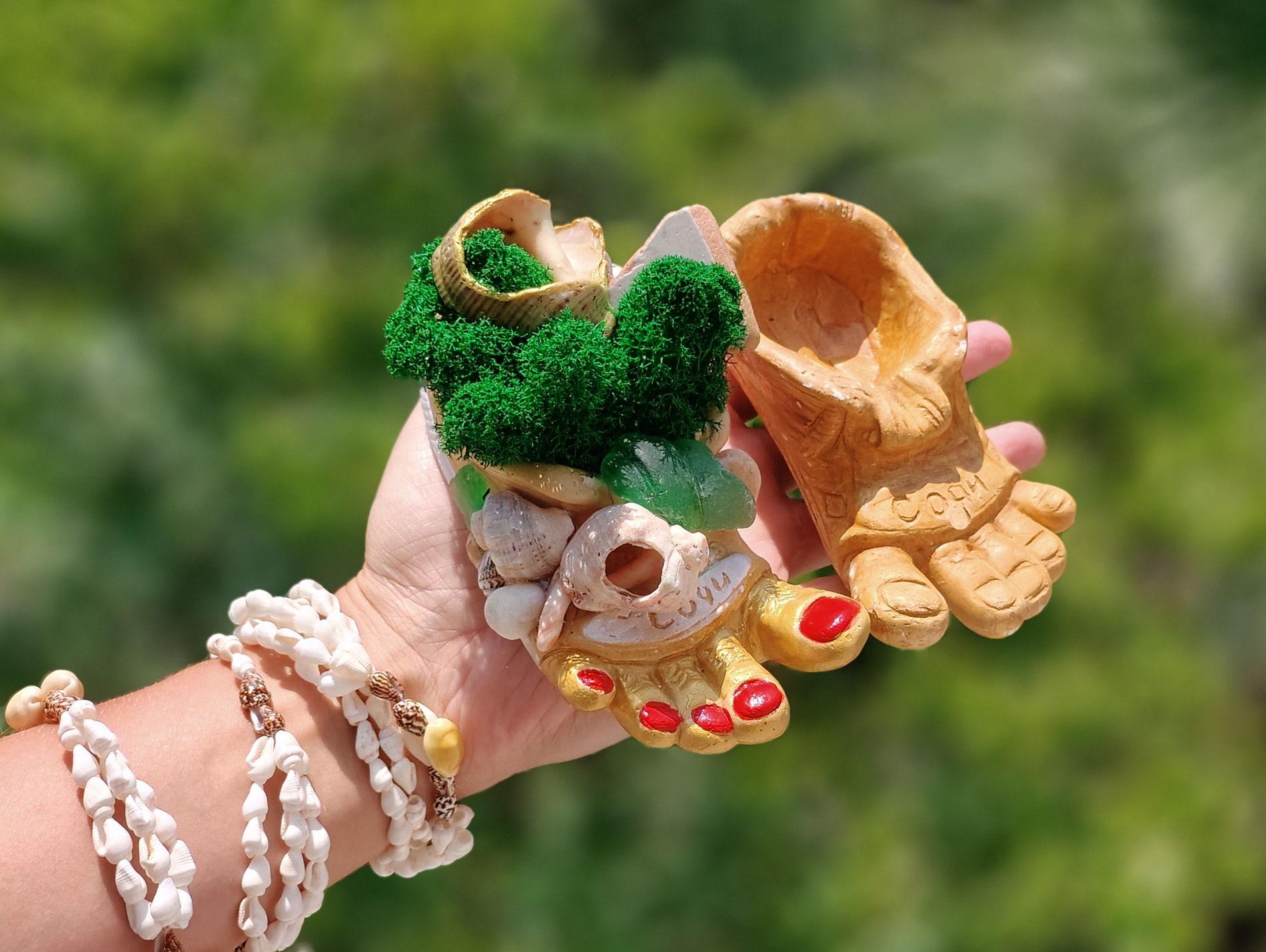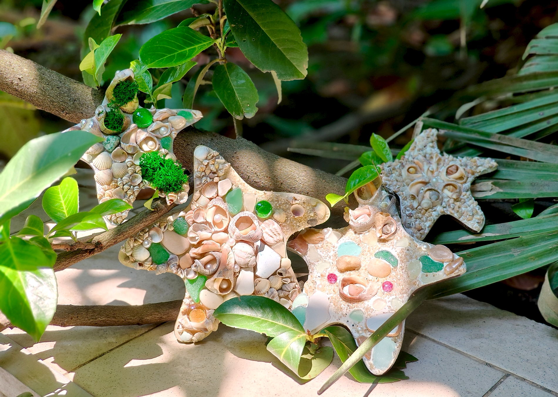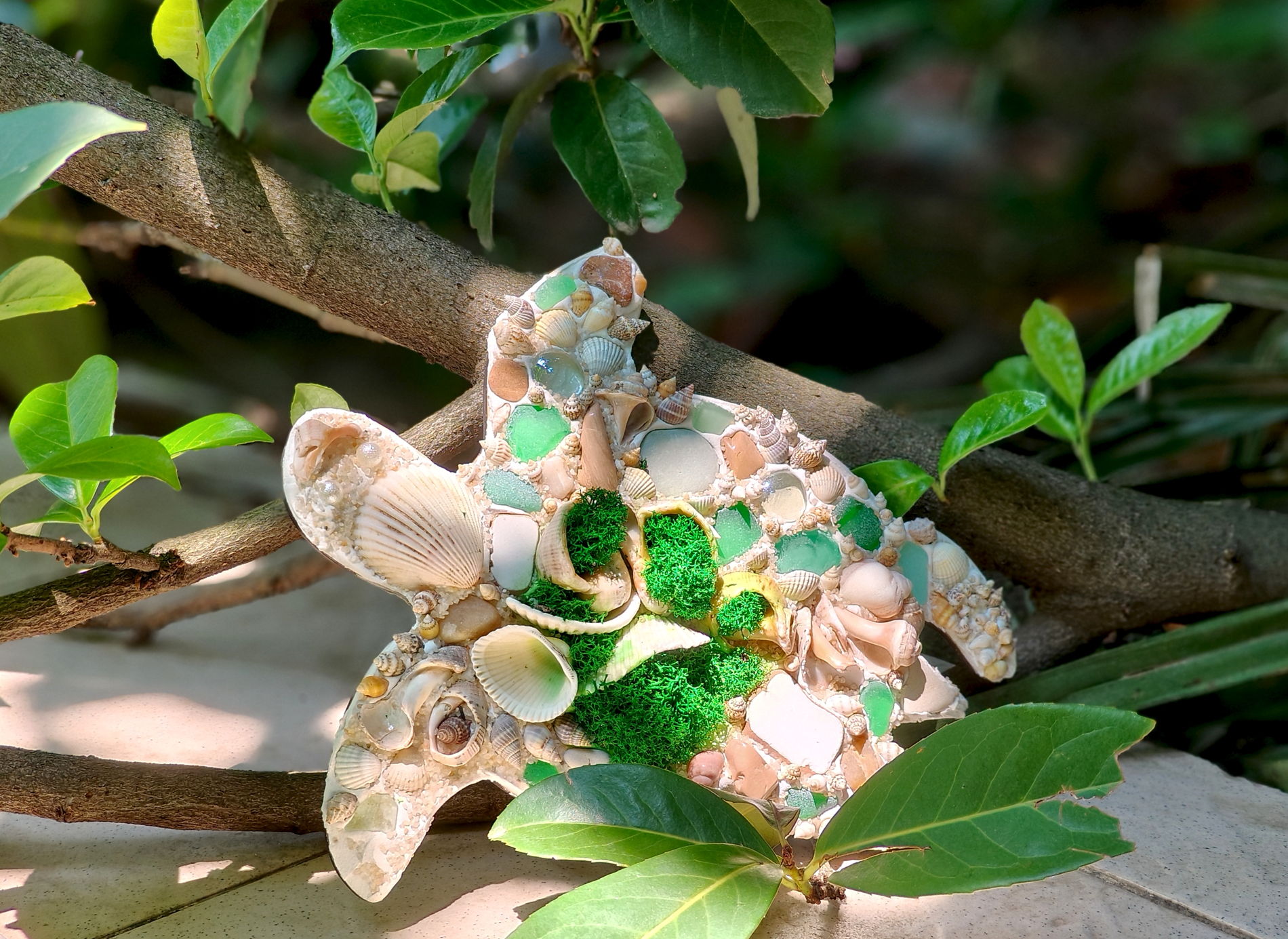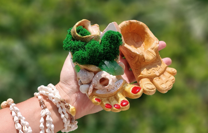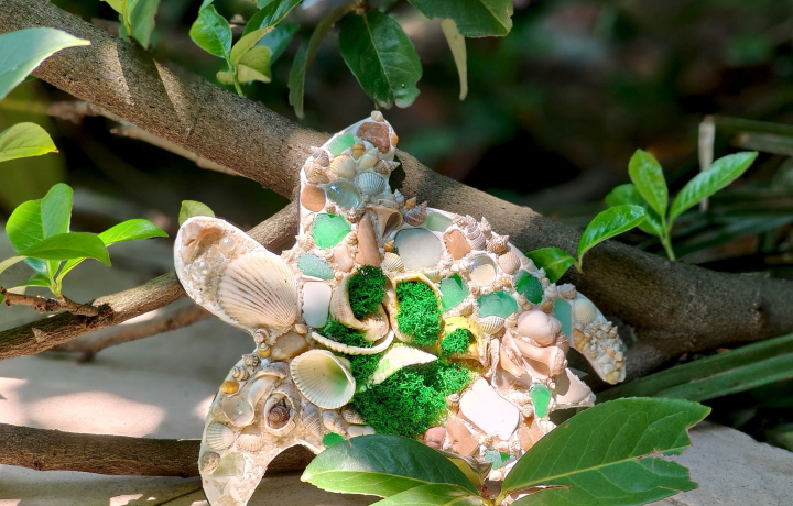 Этот сувенир невозможно купить в магазине. Вы соберёте его лично из натуральных материалов — яшмы, лазурита и других минералов, морских ракушек различных форм и размеров, морского стекла и керамики, стабилизированного мха, акриловых красок и эмалей.