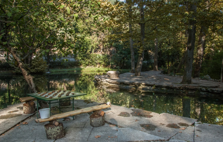 Знакомство с Абхазией невозможно представить без его главной природной жемчужины — озера Рицы. Возле сказочного водоема на высоте 950 метров над уровнем моря вы услышите связанную с ним старинную легенду. А на берегу у вас будет возможность пообедать в приятном заведении, где вам предложат такие известные традиционные блюда, как мамалыгу, шашлык, форель, сыр сулугуни, хачапури и овощные закуски, а также, конечно, вино или чачу и ароматный кофе по-восточному.