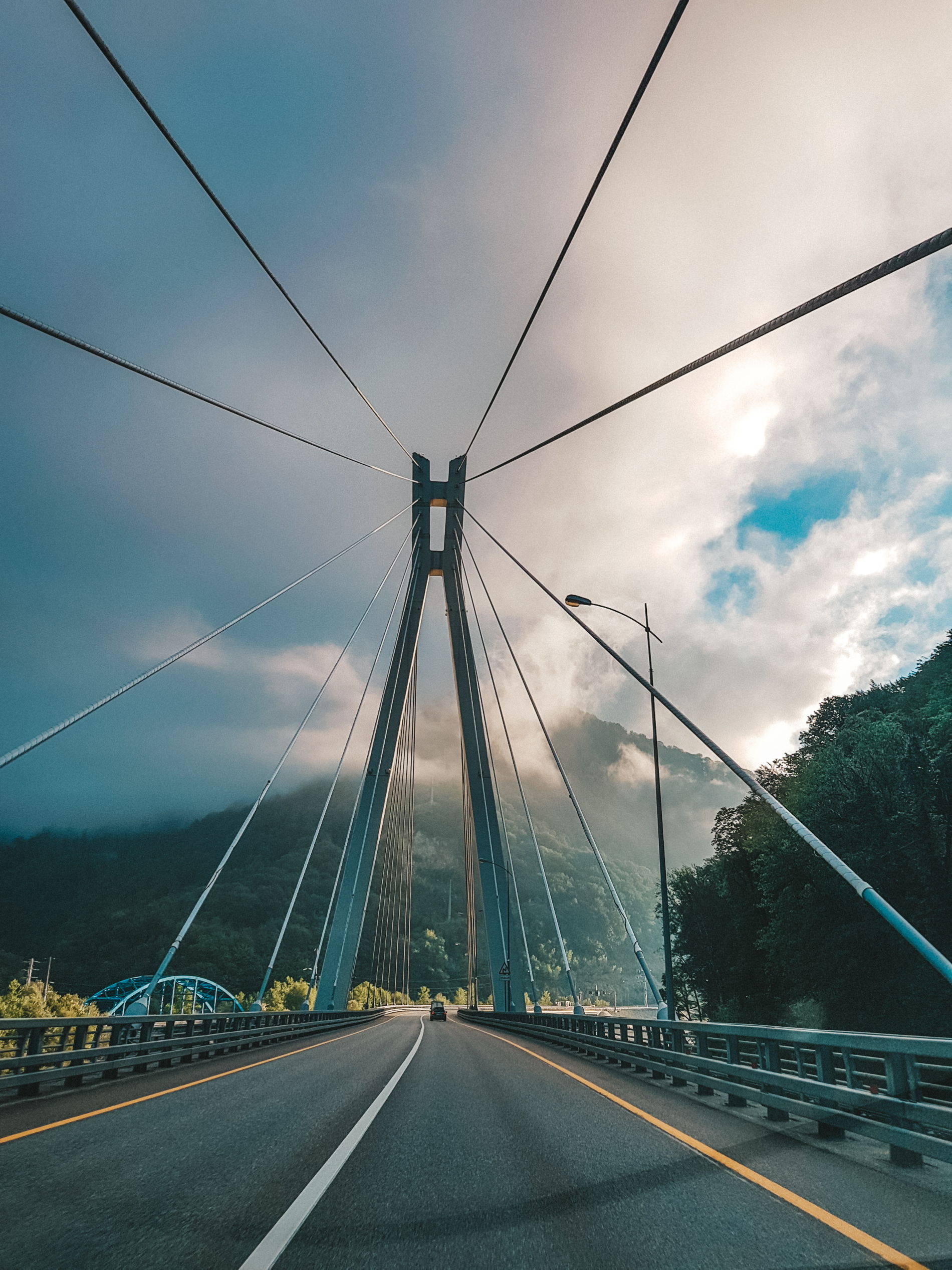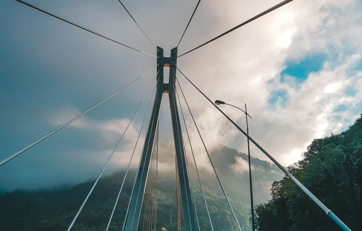 Возвращаться в отель, будем по дороге, построенной к олимпиаде. Там вы увидите красивый вантовый мост и остатки самой первой дороги в Красную Поляну, под названием «Пронеси Господи».