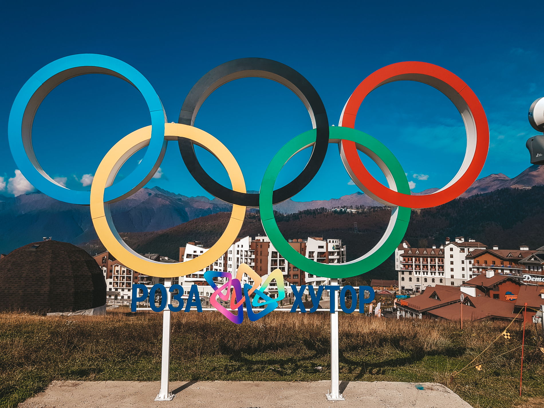После того как вы спуститесь с подъёмников, мы отправимся на аллею флагов, стран участниц олимпиады, она находится в горной олимпийской деревне, где жили спортсмены.