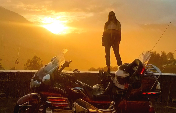 Закат в горах — на мотоцикле