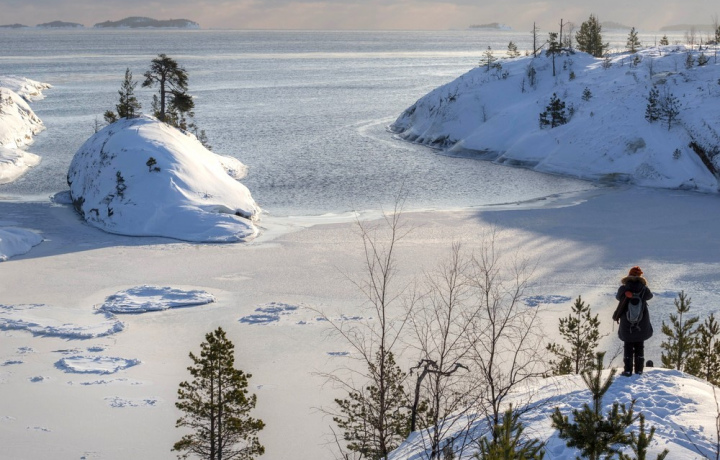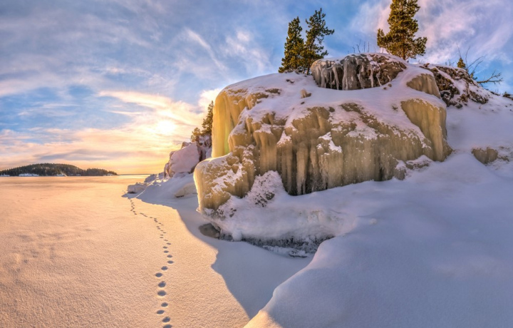 В Северном Приладожье зимой морозно и снежно, поэтому мы используем аэролодку, которая работает благодаря авиационному винту и созданию воздушного потока. В небольшом, но уютном салоне тепло и не дует. Скользя по Ладожскому озеру на аэролодке, вы полюбуетесь береговой линией, изрезанной заливами и скалами. Если позволит погода, то также высадитесь на острове Раутапорте, чтобы посмотреть на шхеры сверху.
