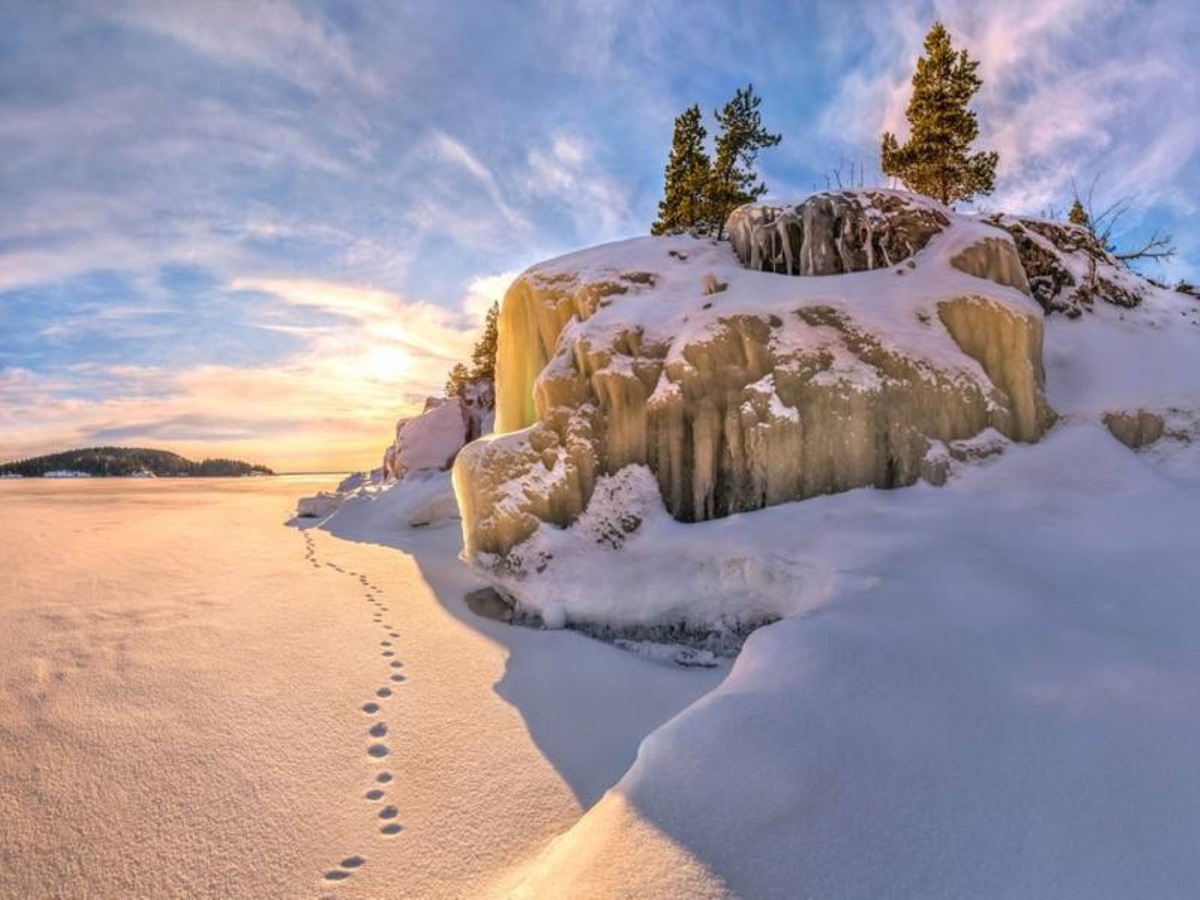 Ладога и её шхеры зимой — по-своему прекрасны. Вы убедитесь в этом, оказавшись в тёплой и безопасной аэролодке, которая промчит вас сквозь льдины к красивым заснеженным пейзажам. Если повезёт, увидим ладожскую нерпу. И независимо от везения сделаем остановку на острове Хонкасало, где вы сможете подняться на смотровую площадку «Крыша Ладоги».