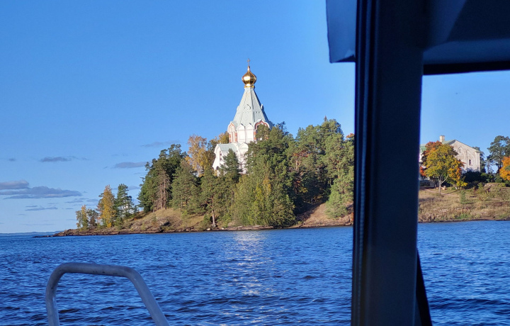 • На обратном пути мы подходим к острову Всех святых, где находится храм Ксении Петербуржской и можем посмотреть на него с воды и следуем через национальный парк Ладожские шхеры, посещая секретные места и потаенные уголки, высаживаемся, наслаждаемся видами, снимаем фото и видео.
