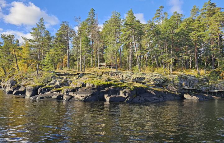 • После попадаем в национальный парк Ладожские шхеры и выходим к острову Хонкасало (или Пиени-Хепосари, к одному налево, к другому направо), здесь высадка на 30-40 мин (или на обратном пути). Если к монастырю или шхерам идем через Хонкасало, то обратно через Пиени-Хепосари, и наоборот, смотря, какая волна и по желанию группы.