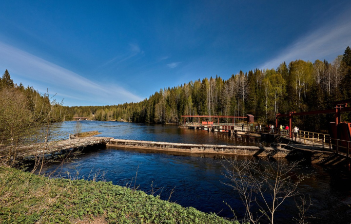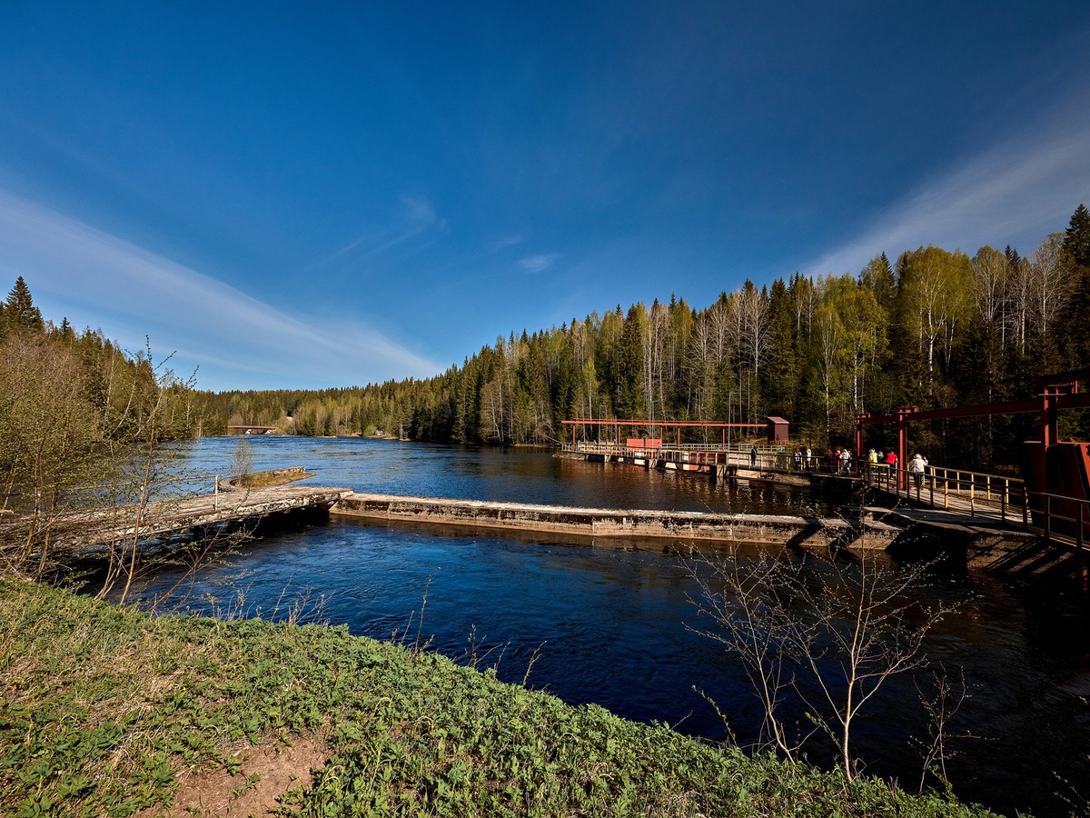 Одна из старейших ГЭС России: плотина превращает реку в мощный водопад, а станция работает полностью автоматически.
