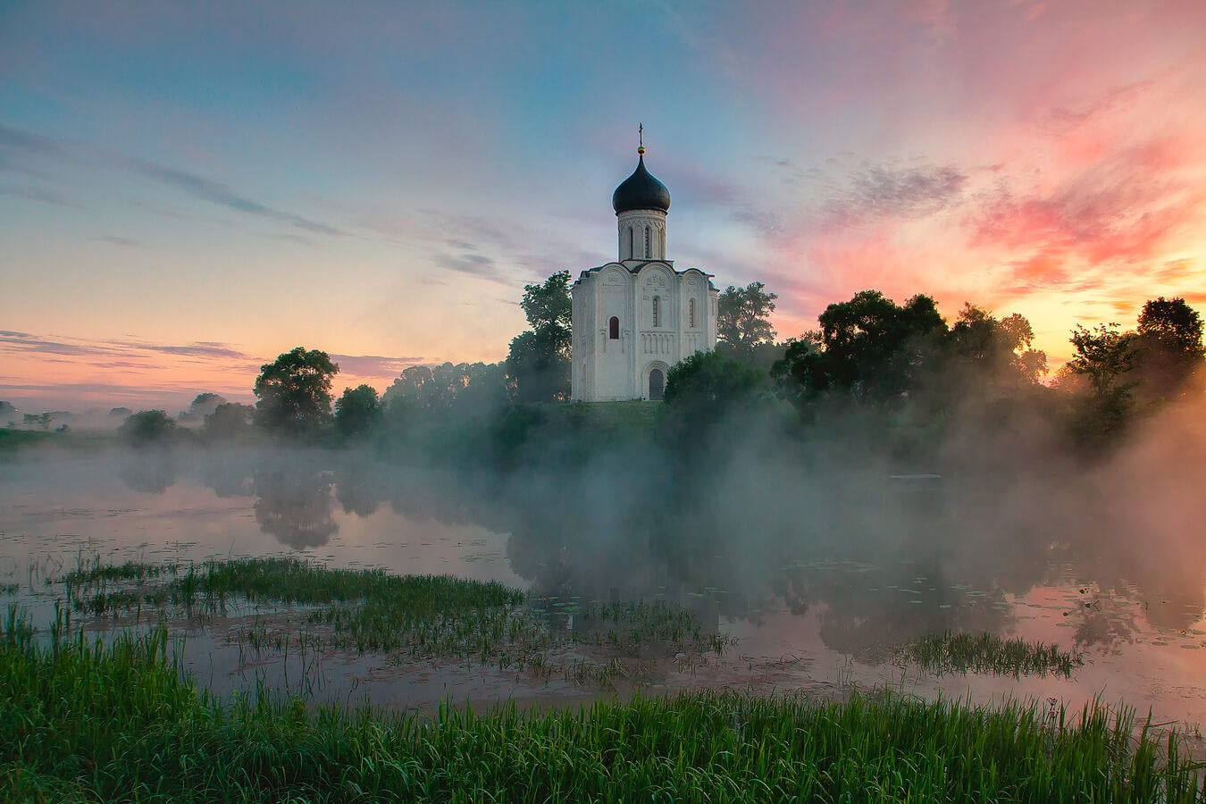 Древнейший и известнейший храм всего Золотого кольца. Храм расположен в уникальном месте — на искусственном насыпном холме в месте слияния рек Нерль и Клязьма.