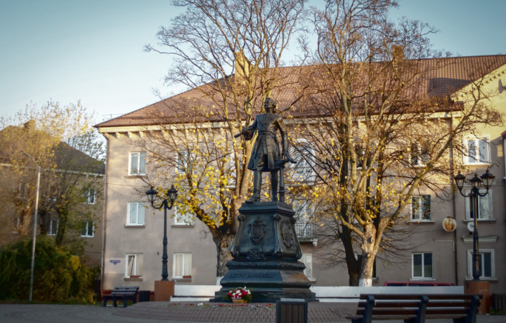 Памятник Петру I — император запечатлен в полный рост на шестиметровом постаменте, он называл Пиллау своим «маленьким Амстердамом».