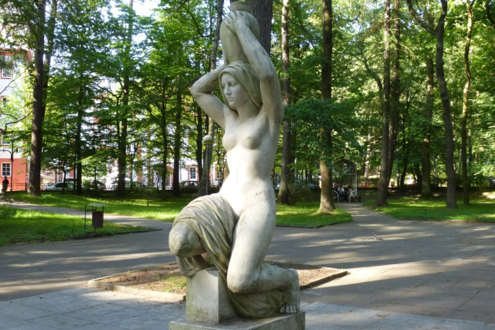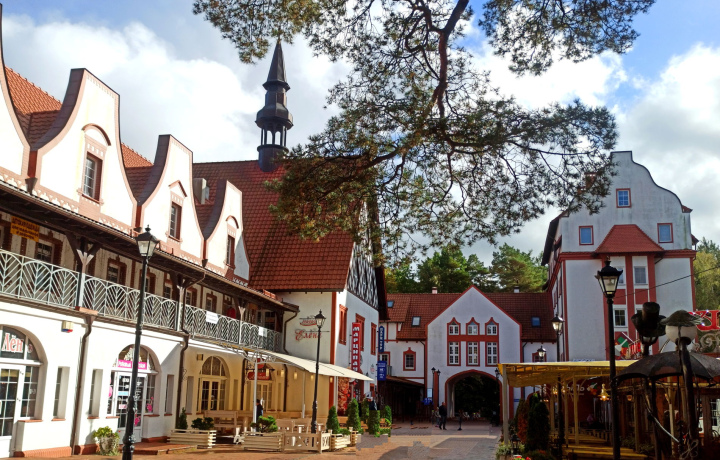 Небольшая Центральная площадь Светлогорска изобилует интересными арт-объектами. С одной стороны площади фасады домов стилизованы под архитектуру старинных немецких городов. Это торговые ряды «Раушен». В них работают кафе и сувенирные лавки.