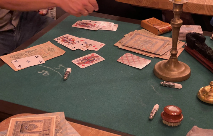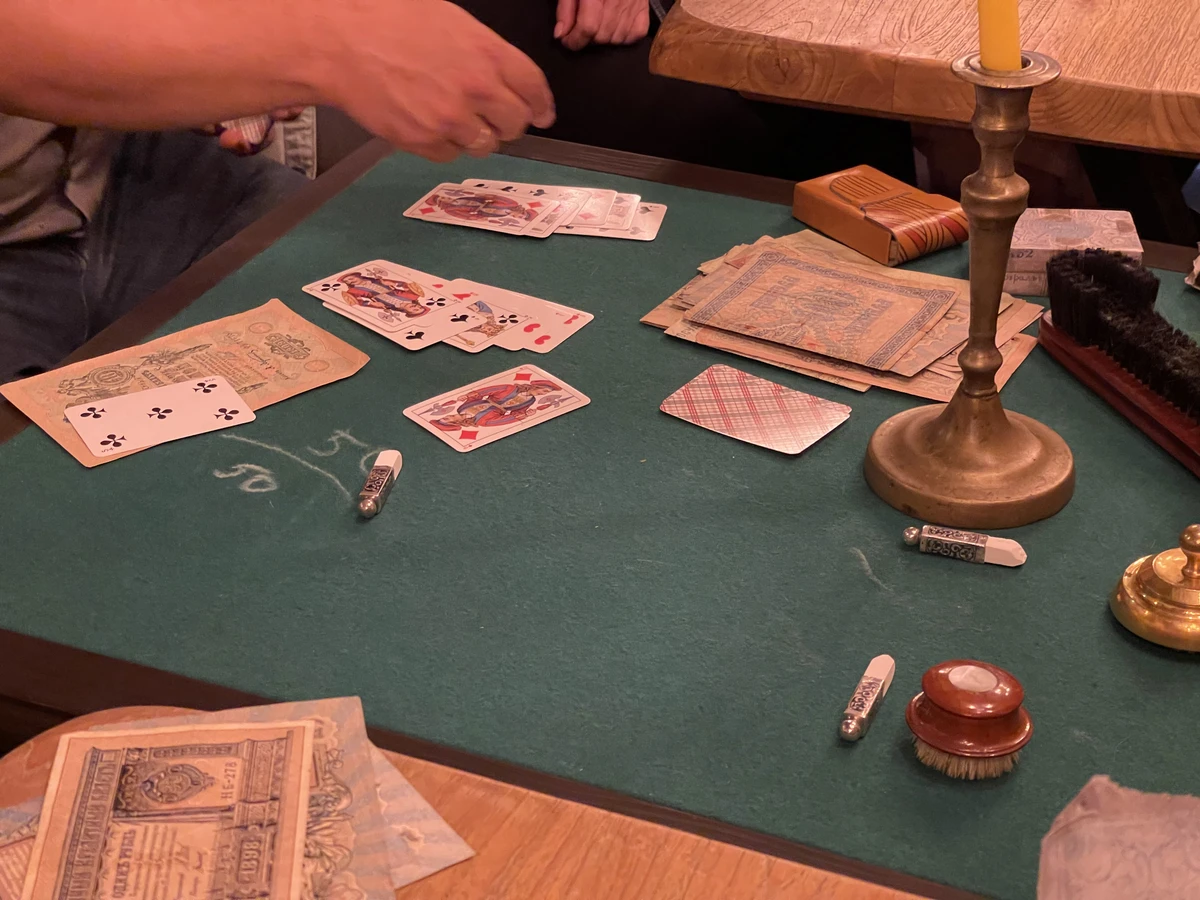 Вы погрузитесь в атмосферу салонов конца 19 – начала 20 века и познакомитесь с историей карт и карточных игр. А затем сыграете в штосс, который был так популярен у русских классиков и их литературных героев. И да, для полного антуража возьмёте в руки карты из дореволюционной колоды!