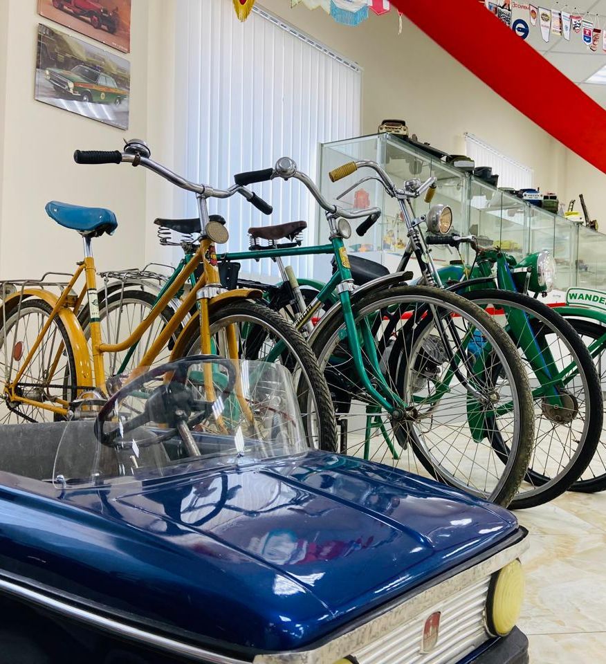В музее представлены модели автомобилей, тракторов, трамваев и автобусов, самолетов и кораблей, а также педальные машинки, велосипеды, мотоцикл. Коллекция нашего музея собиралась много лет и теперь мы рады показать ее вам!