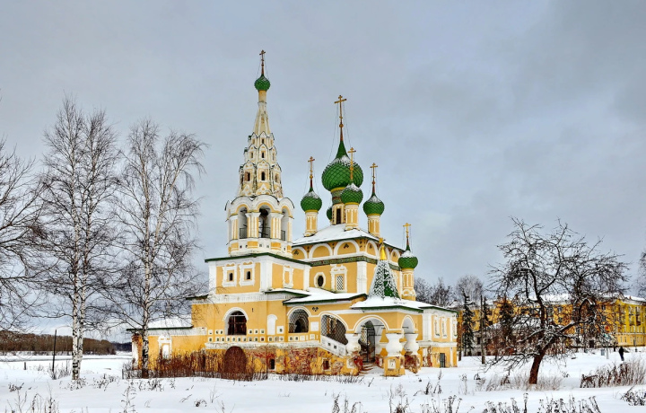 В Спасо-Преображенском соборе полюбуемся копиями работ Рафаэля, Рэни, Доминикино — и потрясающим иконостасом. А после поднимемся на колокольню: с высоты птичьего полета вам откроется панорама Кремля, а рядом сам прозвонит в колокол механизм удивительных часов — не зря угличский часовой завод «Чайка» знаменит на всю страну.