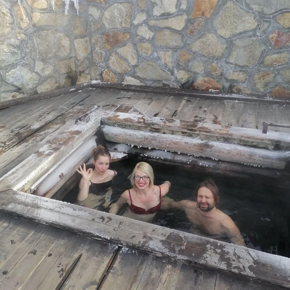 Купание в горячих термальных источниках под открытым небом и байкальский обед.