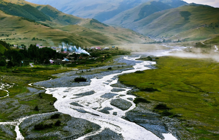 В долине Мидаграбин вы встретите альпийские луга, бурные реки и скальные отроги с туманными вершинами, обступающие урочище. По одной из таких стен, Мидаграбинской подкове, струятся заповедные водопады с высочайшим потоком Европы. А за каменным барьером прячутся три ледника, дающие им жизнь — Донжеты, Джимара-Хох и Зейгалан.