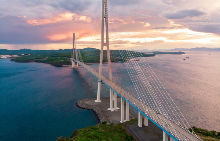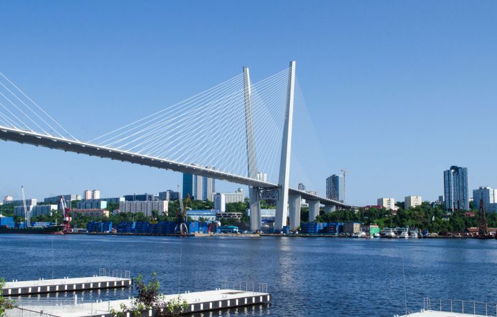 Одна из главных достопримечательностей Владивостока — Золотой мост. Вантовая переправа, построенная в 2012 году, соединяет берега бухты Золотой Рог. Длина сооружения составляет 1388 метров, ширина — 30 метров. Конструкция моста может выдержать шквалистые порывы ветра и 8-балльные землетрясения. Для автомобилей предусмотрено 6 полос движения.