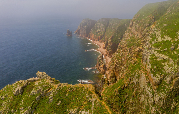 Наша прогулка по живописной природной тропе займет около часа. Здесь вас ждут головокружительные виды: обрывы, каменистые пляжи, старый маяк.