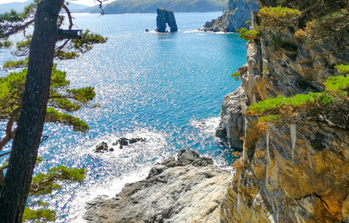Если вы пока ничего не знаете про мыс Сосновый, просто посмотрите на фото! Здесь прозрачное море, величественные кекуры, обильная растительность и дикие пляжи заставляют забыть, что вы в России. Чтобы попасть в это райское место, мы доедем к морю на внедорожнике, а потом неспешно прогуляемся из бухты Льва к мысу, наслаждаясь видами! А когда устроим привал, гид угостит вас вкусным чаем.
