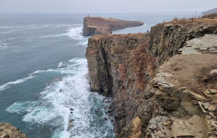 - Посещение одного из мысов (на выбор): мыса Шмидта (высокая смотровая площадка с видами на остров), мыса Тобизина (скалы с окаменелостями аммонитов) или мыса Вятлина (скальные арки над морем).