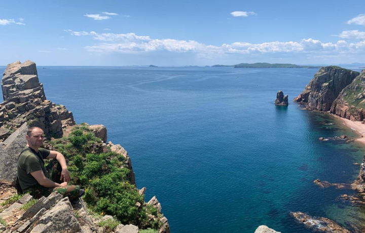 После осмотра батареи едем дальше по лесной дороге к побережью и переходим по отмели на остров Шкота (примерно 70 метров по пояс в воде). Затем лёгкий перекус, купание — и движемся дальше. Мы увидим чаны для засолки рыбы, а затем пройдем по территории учебного центра, мимо зданий, где в годы войны готовили снайперов, пулеметчиков и артиллеристов, и спустя примерно 40 минут окажемся в самой красивой части острова. Дальше не спеша движемся по тропе вдоль скал, откуда открываются изумительные виды на море и окружающие острова. По желанию (и при условии достаточной подготовки группы) мы можем спуститься по веревке в уединённую бухту и погулять там. Напоследок атмосферная достопримечательность — заброшенный маяк, на который вы сможете полюбоваться с берега. Я приготовлю обед, а после пикника мы отправляемся домой. На обратном пути любуемся закатом на мысе Назимова — том самом, вид с которого изображен на двухтысячной купюре. Купюра для тематического фото предоставляется :)