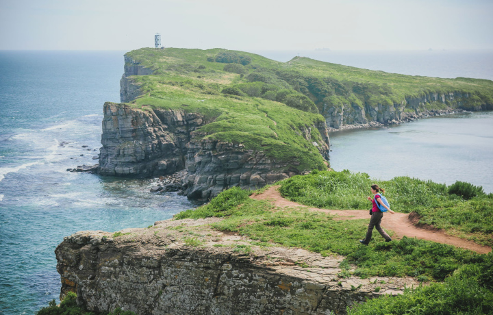 Мы отправимся по живописной природной тропе до мыса Тобизина. В конце мыса на скальных платах устроим пикник. Посмотрим на Океанариум, на любимую у местных серферов бухту Чернышева, и посмотрим на военную береговую батарею с пушками на фоне Русского моста.