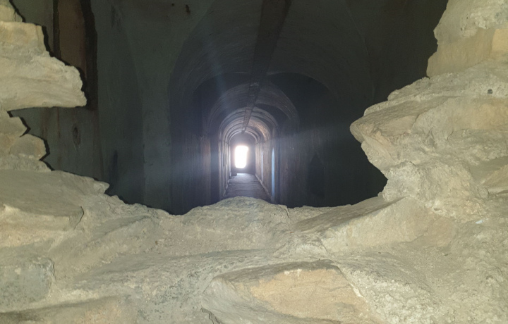 Делаем фото-стоп, узнаем интересную информацию об острове вообще и о батарее в частности. Совсем рядом с Новосильцевской на берегу пролива Босфор-Восточный расположилась батарея Поспеловская. Полюбовавшись морем, мостом и набережной, направляемся к форту Поспелова. Подземных сооружений на этом форте меньше, чем на других, но он впечатлит вас великолепной дренажной системой, которая уже больше века отлично выполняет свое предназначение, а также впечатляющими видами с вершины земляного вала!