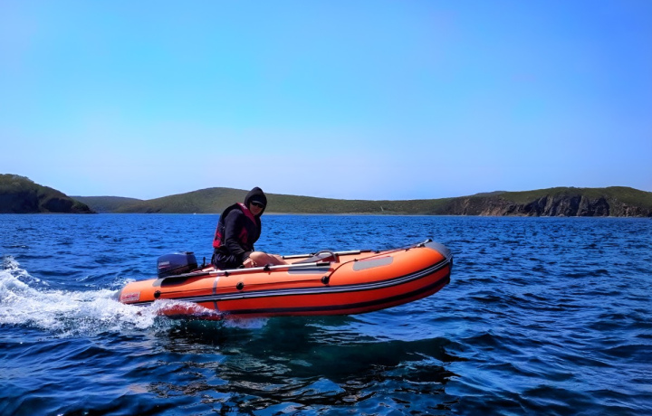 На моторной лодке — вдоль побережья острова Русский