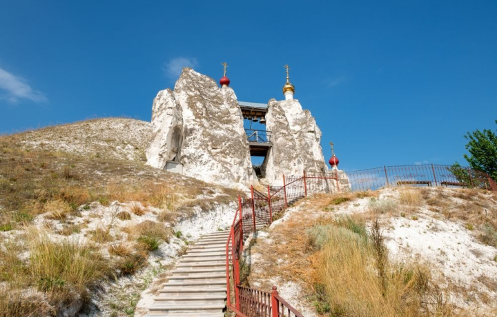 Мы познакомимся с уникальным пещерным храмовым комплексом — действующим женским православным монастырем (XVII век) в Костомарово. Во время посещения Костомаровского Спасского монастыря, пейзажи окрестностей которого местами имеют сходство с пейзажами Каппадокии, мы увидим: гору Голгофа с Поклонным крестом и пещерный храмовый комплекс. По одной из гипотез, поразительное сходство Донских подземных монастырей с древними пещерными сооружениями Каппадокии позволяет предположить, что христиане, бежавшие от кровавых гонений римских императоров поселились на этой земле уже в 1 веке н.э. Позднее, в VIII–X веках, монахи и иконопочитатели бежали от преследований Византийской империи в Сирию, Палестину, на Кавказ. Дорогой, часть которой проходила по Дону, в толще меловых гор они создавали пещерные храмы, распространяя и укрепляя в этих краях христианскую веру.