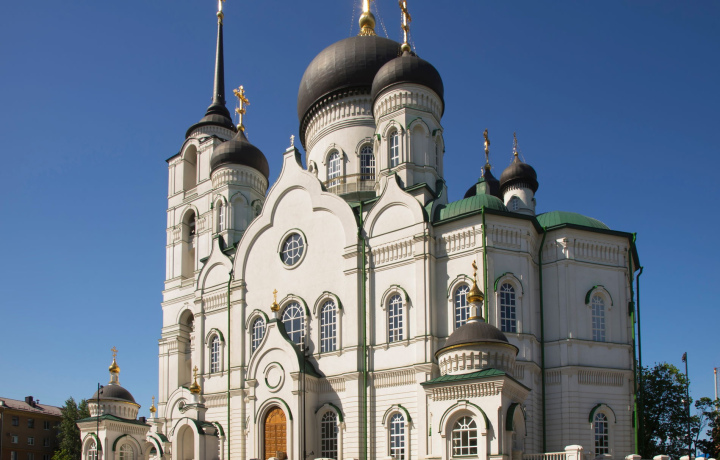 Благовещенского кафедрального собора — одного из самых крупных православных храмов России, символизирующего духовное возрождение города.