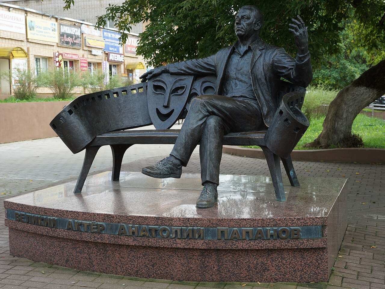 Первые 8 лет свой жизни Народный артист СССР А. Д. Папанов провёл в Вязьме. Война разрушила дом, где он появился на свет. На этом месте в 2012 году был установлен памятник Анатолию Папанову. Великий актёр изображён сидящим на скамейке под раскидистым деревом. Спинка скамьи выполнена в виде киноплёнки — за всю жизнь Папанов сыграл роли в 70 картинах и озвучил около ста мультфильмов. Под правой рукой артиста — две театральные маски, символизирующие комедию и трагедию. Автор неслучайно использовал их в композиции. Папанов был многогранным актёром, он одинаково талантливо воплотил на экране образы героев фильмов «Живые и мёртвые», «Холодное лето пятьдесят третьего» и персонажей в комедиях «Берегись автомобиля», «Бриллиантовая рука».