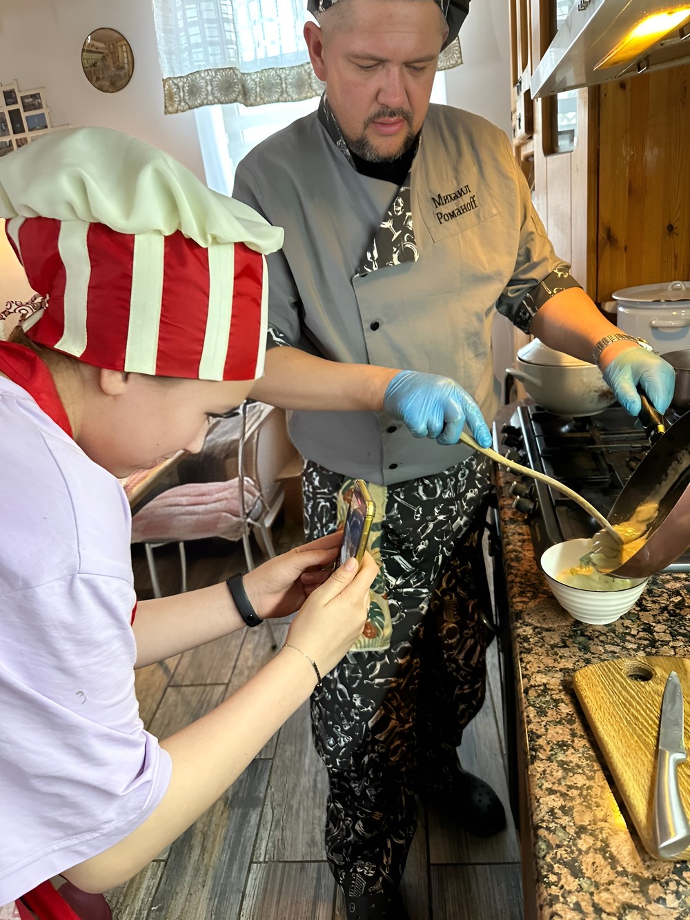 Скорее это не мастер-класс ( т.к. готовили мало и быстро,а стол был уже накрыт), а обед под приятную и познавательную беседу. Очень вкусно и интересно. Спасибо большое))