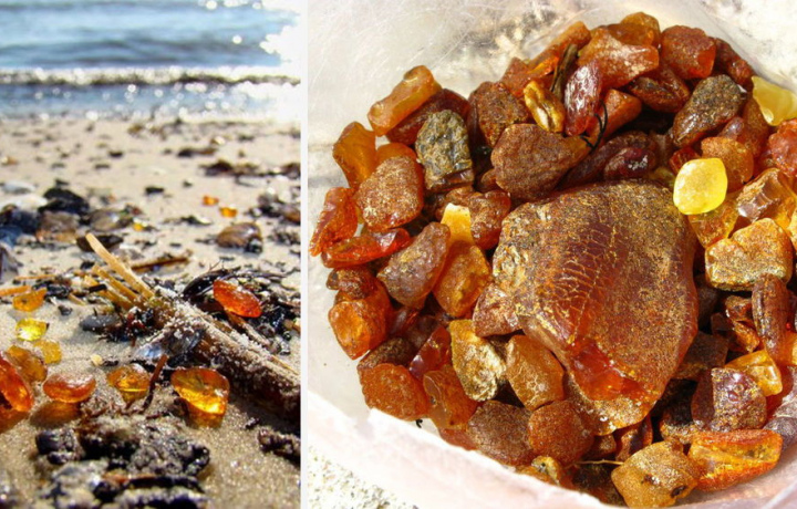 История поселка Янтарный тесно связана с янтарем. В исторических документах поселок упоминается впервые в 1389 — как Пальвеникен, от прусского palwe — пустошь, безлесное болото. К 1491 году он уже значится, как Пальменикен, а еще позже на немецкий лад — Пальмникен.