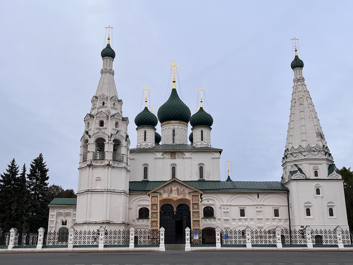 Путешествуя по историческому центру, вы увидите, как встречаются 17 век и 21, узнаете, чем жили и дышали жители Ярославля раньше и как живут сейчас. Вы обязательно посмотрите Советскую площадь и церковь Ильи пророка — визитную карточку города. Я расскажу о судьбе храма, о том, какие легенды с ним связаны, и почему Илья Пророк так почитаем в Ярославле. Вдоль набережной мы дойдем до Стрелки, где встречаются две реки, Волга и Которосль. Вы услышите историю Кремля — Рубленого города, находившегося на этом месте и не дошедшего до наших дней. Здесь сохранилось несколько старинных церквей, а утраченный Успенский собор заново отстроили.