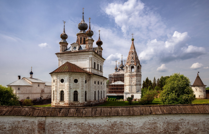 Пройдем к Михайло-Архангельскому монастырю XVII—XVIII веков, расположенному в кольце защитных валов. Осмотрим Знаменскую, Надвратную и Георгиевскую церкви.