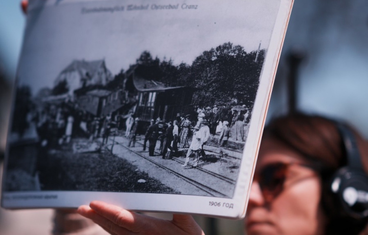 Аудиоспектакль-экскурсия идет в наушниках 1,5 часа, записано все профессиональными актерами, звук хороший, можно увеличить громкость, не мешает уличный шум. Группу сопровождает экскурсовод, который показывает старые фото, чтобы можно было сравнить здания. Но не всегда экскурсовод долго держал фото, иногда быстро опускал, и приходилось брать альбом и смотреть самой. Маршрут от ЖД вокзала до конца Курортного проспекта не длинный, к водонапорной башне не подходят, ее показывают издалека только. Содержание экскурсии сосредоточено вокруг становления в Зеленоградске/Кранце курорта. В целом хорошая экскурсия, но считаю завышенной стоимость в 1200 руб. Потом узнали, что Краеведческий музей проводит пешие экскурсии за 600 руб. с человека за 2 часа времени, но не в любой день, как я поняла, а по каким-то дням недели. Цену за экскурсию надо все же снизить или хотя бы записать еще полчаса.